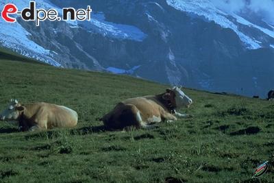 牧場の牛とユングフラウ